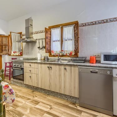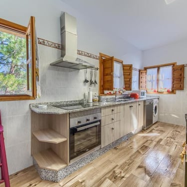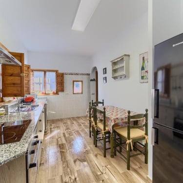 En su interior, se encuentran amplias salas comunes, un salón acogedor y una cocina completamente equipada que se convierten en el corazón del hogar. El salón, con sus cómodos sofás y decoraciones rústicas, ofrece un espacio ideal para relajarse, leer un buen libro o disfrutar de una conversación amena con amigos y familiares. Esta casa rural no es solo un lugar para alojarse; es un espacio donde la vida en común florece, ofreciendo múltiples oportunidades para disfrutar de momentos mágicos y forjar lazos más fuertes entre sus habitantes.