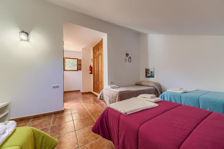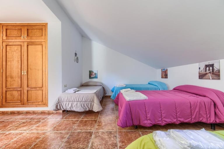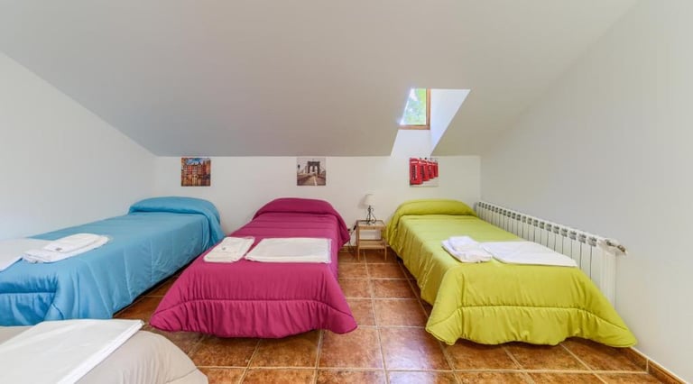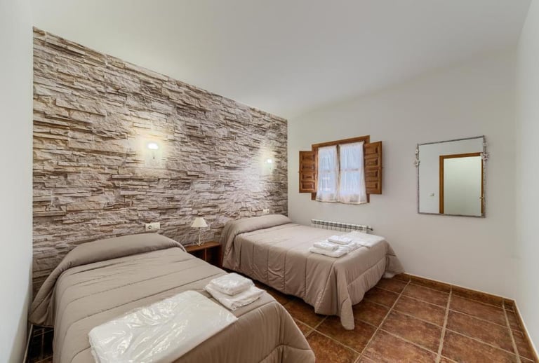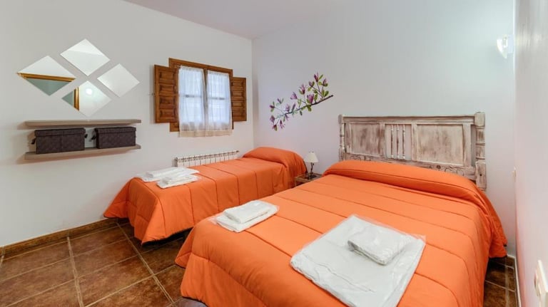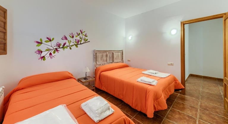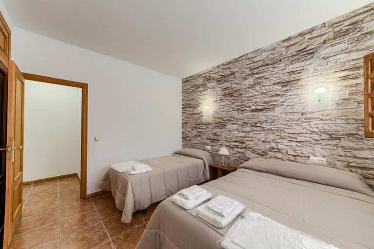 El alojamiento cuenta con hasta 3 habitaciones de gran tamaño con diferente número de camas en función de la ocupación, pudiendo albergar desde 8 hasta a 10 personas de manera cómoda y confortable. Además se dispone de dos cuartos de baño amplios y espaciosos.